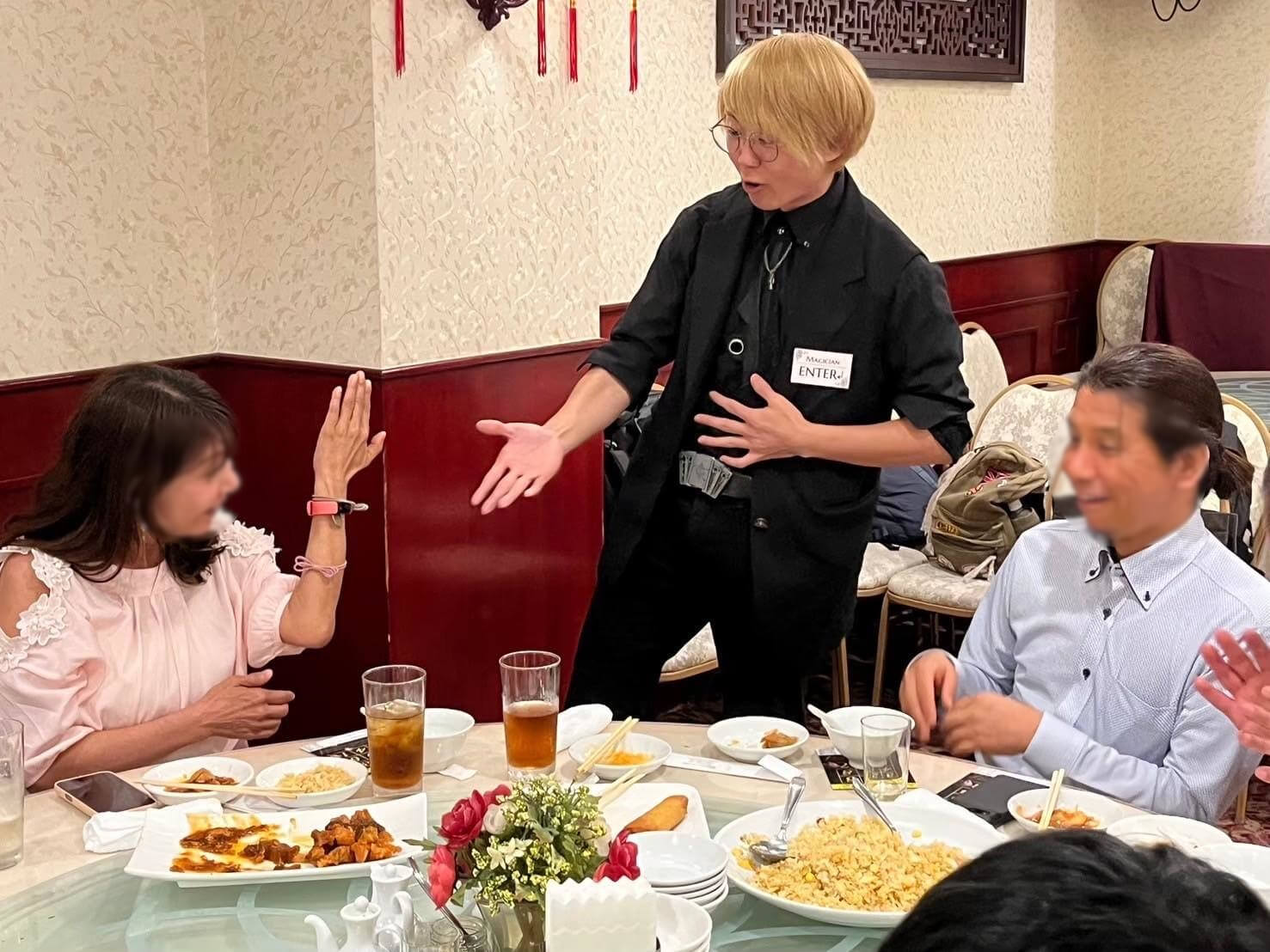 テーブルマジックのスタイルで、各テーブルを順番に回りながらマジックを披露します。