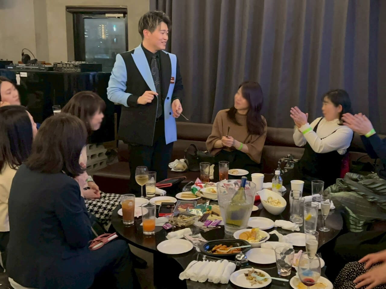 およそ1テーブル5分程でマジシャンが回ることが多いですが、派遣するマジシャンの人数とテーブルの数によって、時間と金額が変動いたします。